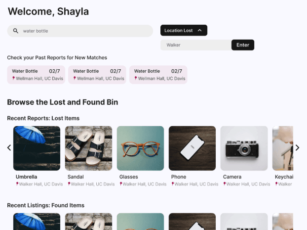 Reviewed UC Davis's existing lost-and-found systems, Facebook groups, Ring Neighbors, Pixit, Crowdfind